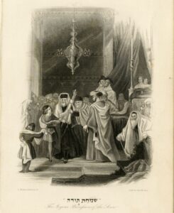 Gravura sobre Simcha Torá de 1850 nos EUA
